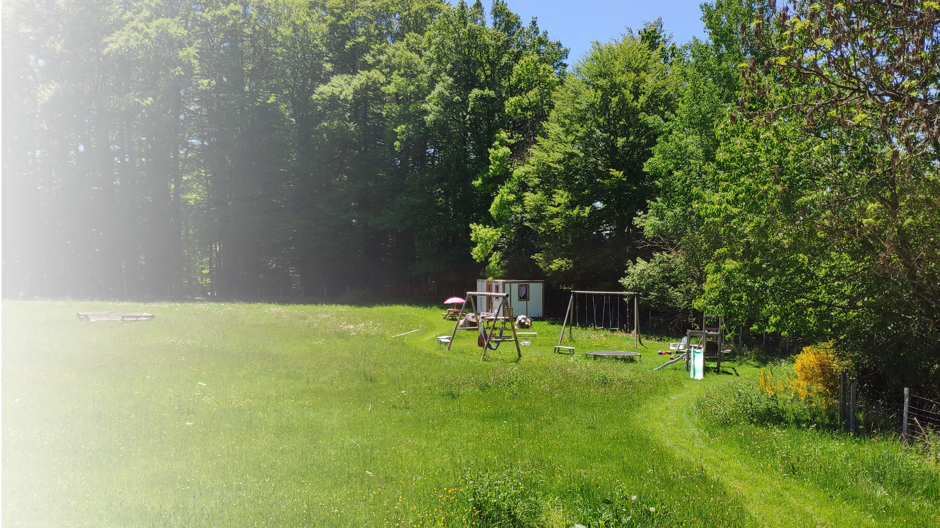 Sur place, profitez de notre petit camping à la ferme, installé dans un cadre verdoyant avec vue sur la campagne auvergnate.
